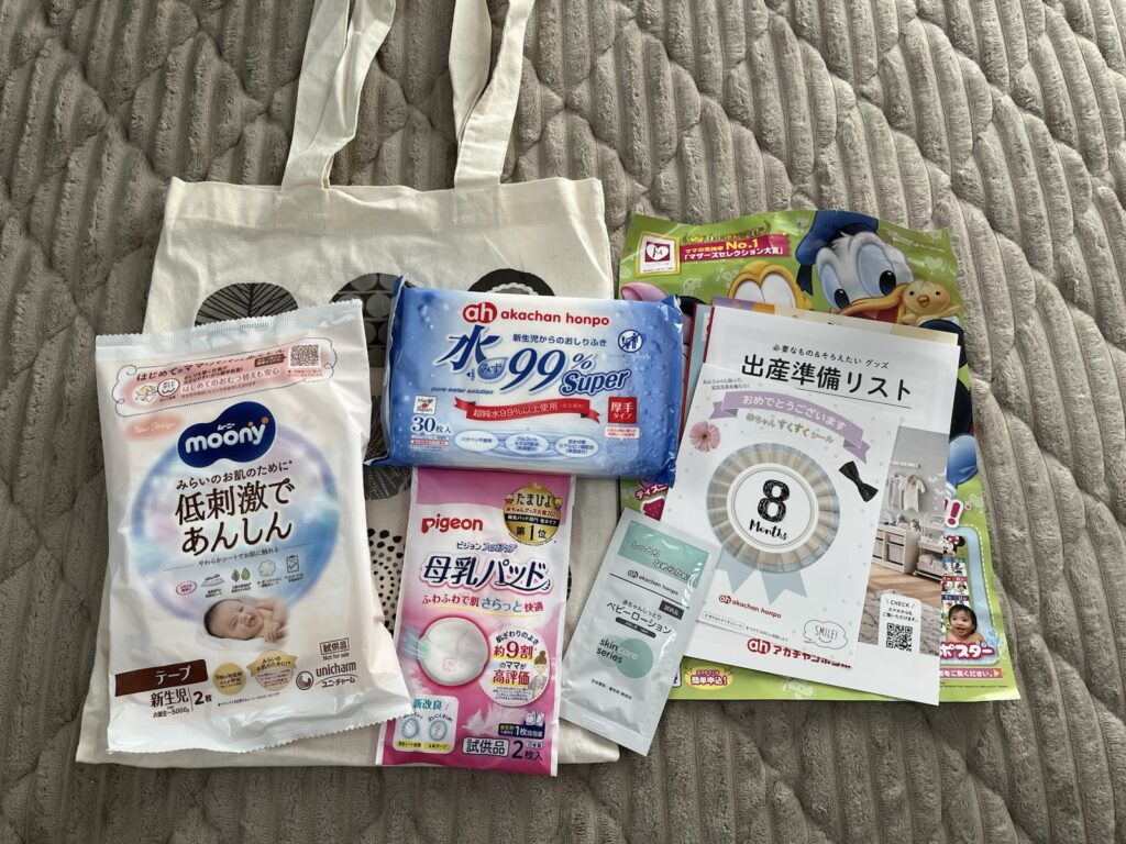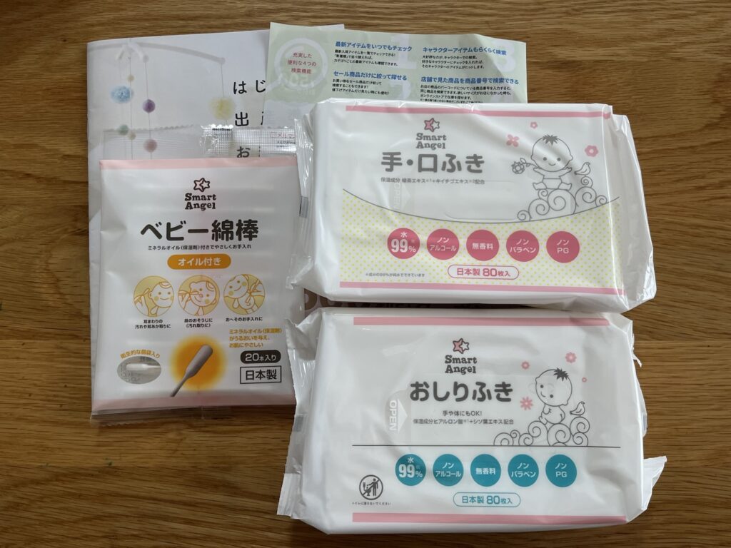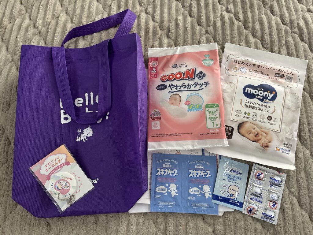 こちらも生まれてから使えるものが入っていました。マタニティマークももらえたんですが、子供にとられて写真におさまらずすみません(笑)