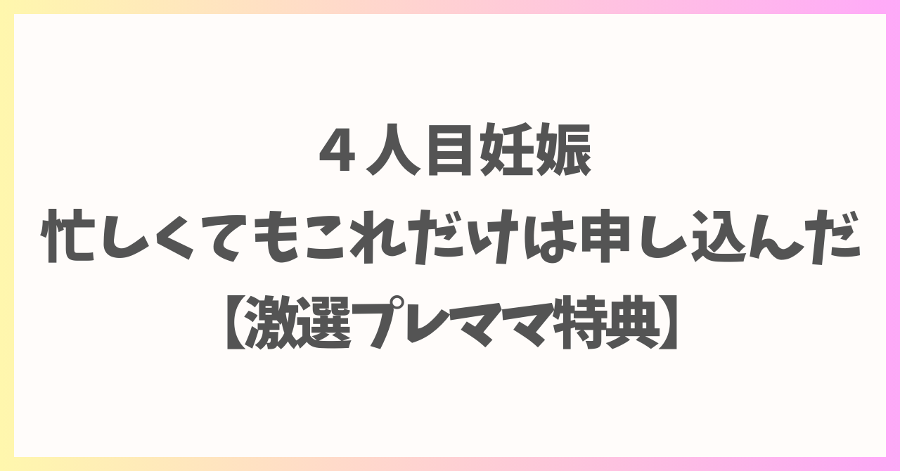 今回はめんどくさがりな私が、4人目妊娠中に応募したものだけにしぼって紹介しました。また追加で応募することがあれば、この記事に追加しようと思っています。